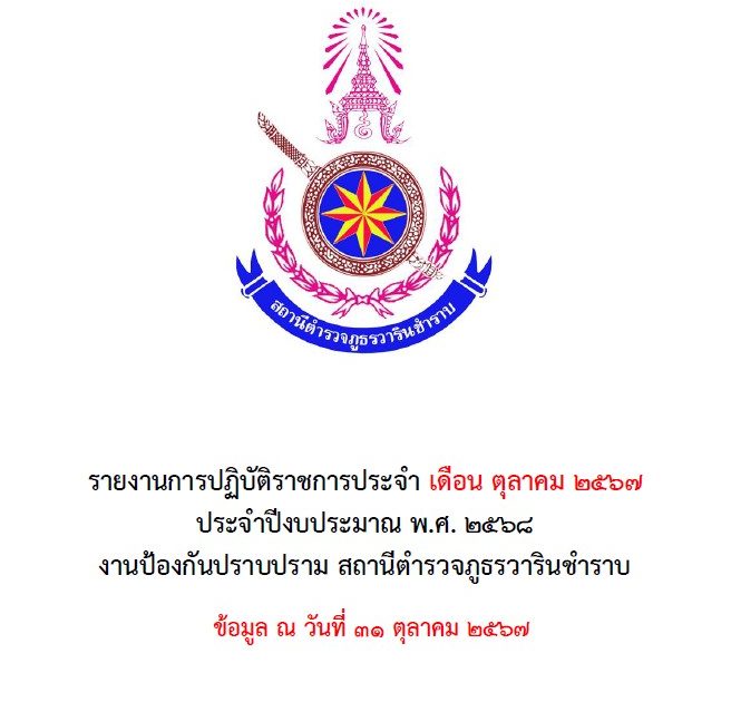 รายงานการปฏิบัติ งานป้องกันปราบปราม ประจำเดือน ต.ค.67 1 พฤศจิกายน 2024 โดย warinchamrab / งานป้องกันปราบปราม งาน ป. รายงานการปฏิบัติราชการ ต.ค.67 PDFดาวน์โหลด งาน ป. รายงานการปฏิบัติราชการ ต.ค.67 Wordดาวน์โหลด