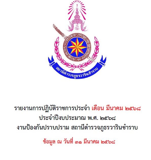 รายงานการปฏิบัติ งานป้องกันปราบปราม ประจำเดือน มี.ค.68 21 เมษายน 2025 โดย warinchamrab / งานป้องกันปราบปราม งาน ป. รายงานการปฏิบัติราชการ มี.ค.68 PDFดาวน์โหลด งาน ป. รายงานการปฏิบัติราชการ มี.ค.68 Wordดาวน์โหลด