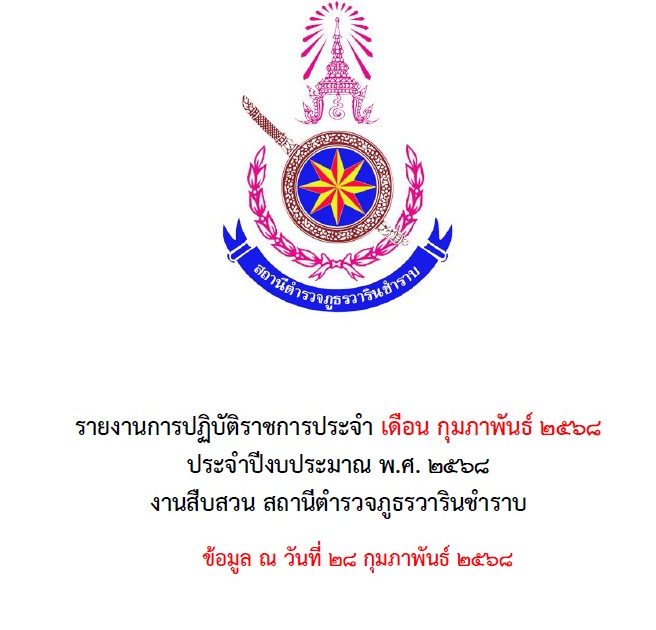 รายงานการปฏิบัติ งานสืบสวน ประจำเดือนก.พ.68 1 มีนาคม 2025 โดย warinchamrab / งานสืบสวน งานสืบสวน รายงานการปฏิบัติราชการ ก.พ.68 PDFดาวน์โหลด งานสืบสวน รายงานการปฏิบัติราชการ ก.พ.68 Wordดาวน์โหลด