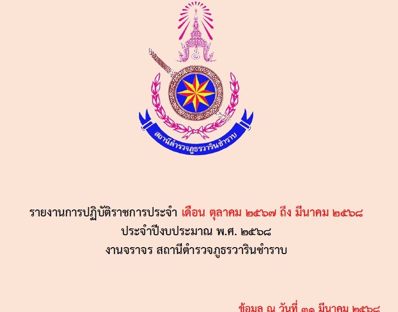 สรุปรายงานการปฏิบัติ งานจราจร ประจำ 6 เดือน ต.ค.67 – มี.ค.68 21 เมษายน 2025 โดย warinchamrab / ไม่มีหมวดหมู่ O7ผลการปฏิบัติงานของงาน จราจร ประจำเดือน ต.ค.67 – มี.ค.68 PDFดาวน์โหลด OO7ผลการปฏิบัติงานของงาน จราจร ประจำเดือน ต.ค.67 – มี.ค.68 Wordดาวน์โหลด